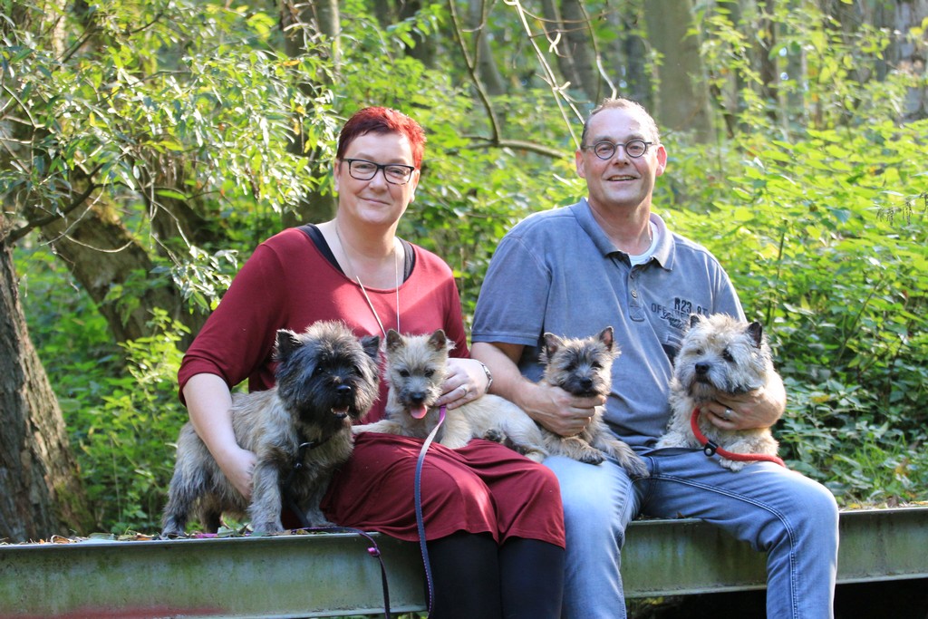 Onze eerste Cairn Terrier was Conner waarvan wij 11 jaren hebben mogen genieten. Na het overlijden van Conner was het snel duidelijk dat we niet zonder konden. Via een Cairn Terrier-fokker uit Schinveld, Red Creek Rebels (Jos & Brigitte Peters-Schins), kochten wij Ross (Red Creek Rebels Twice as Nice). Omdat wij een speelkameraadje wilden voor onze Ross kochten wij ruim een jaar later, bij dezelfde fokker, Rory (Red Creek Rebels Son of a Gun). Onze Rory bleek een echte showhond; een hele mooie vertegenwoordiger van het ras. Er werden show- en trimcursussen gevolgd wat er uiteindelijk in resulteerde dat Jack nu zelf onze honden trimt. En met succes…..